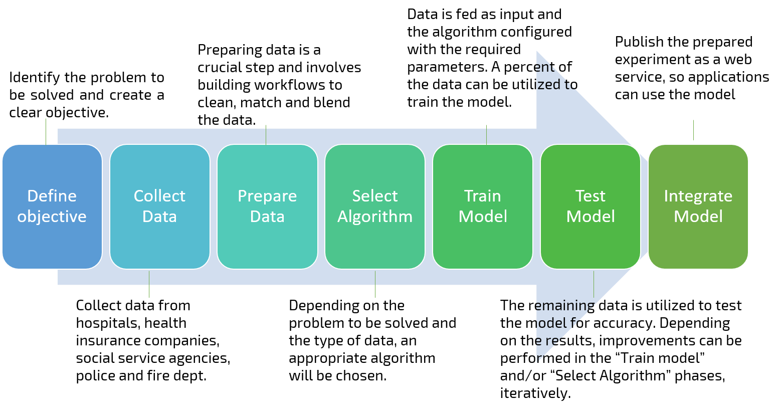 The main steps involved in building a machine learning workflow is shown below: